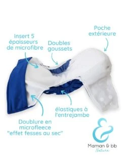 Mega Pack Sensitive : Lot De 20 Couches Lavables TE1 + Inserts + Voiles + Sac – Indigo