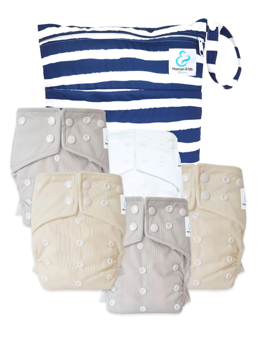 Easy To Go Sensitive – Lot De 5 Couches Lavables Intégrales TE1 Et Sac – Mariniere