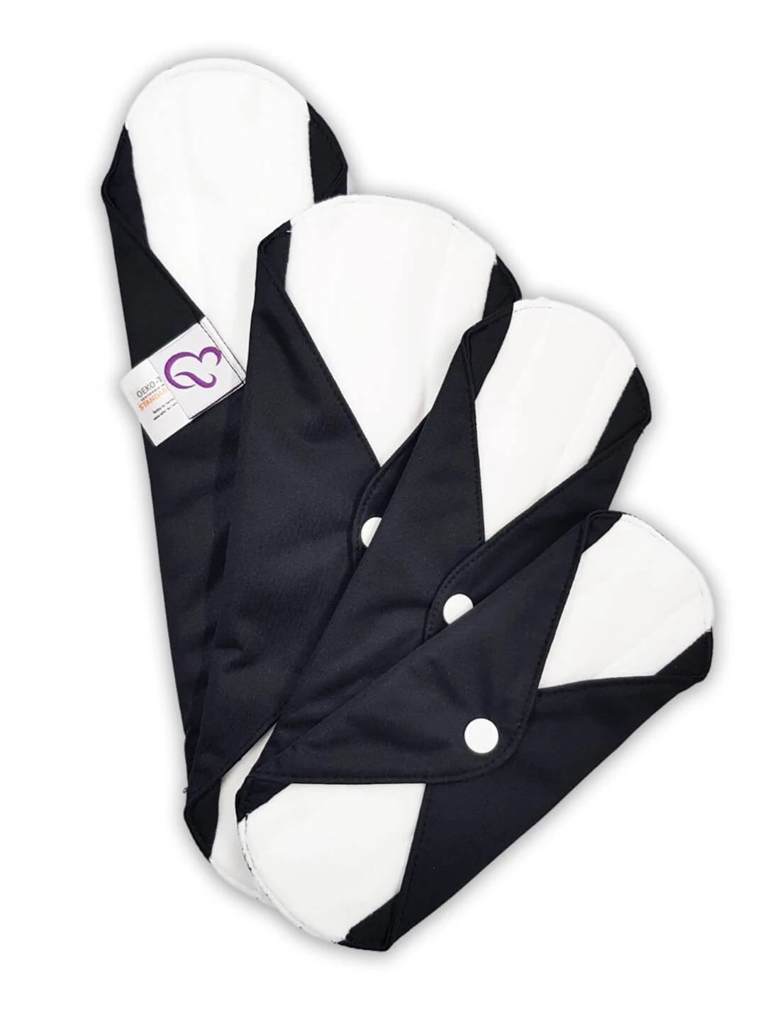 kit de 4 serviettes hygiéniques lavables conçues en matériaux certifiés Oeko Tex standard 100 Classe 1.