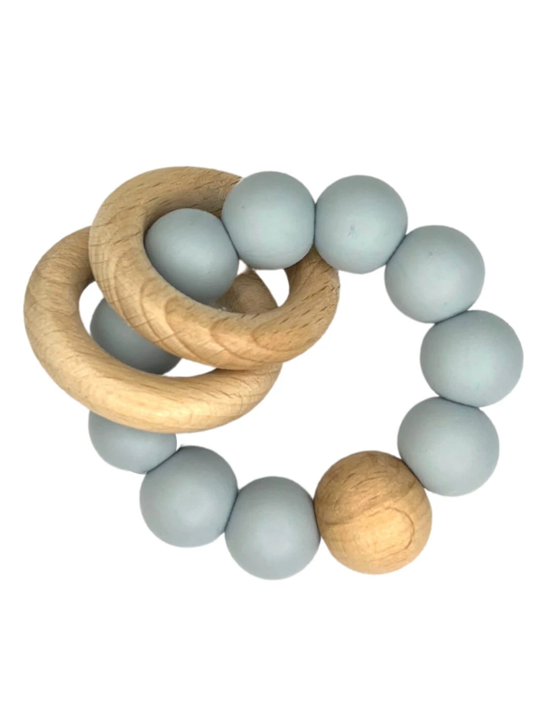 Composé de différentes matières, couleurs et formes, le hochet de dentition participe également à l’éveil des sens de bébé. Il dispose d’un anneau en perles en bois et silicone alimentaire, et de deux petits anneaux en bois lisse. Spécialement pensé pour les petites mains, il peut être manipulé et secoué très facilement. Ainsi, il développe la coordination main:oeil et facilite le développement de la motricité fine de votre bébé.