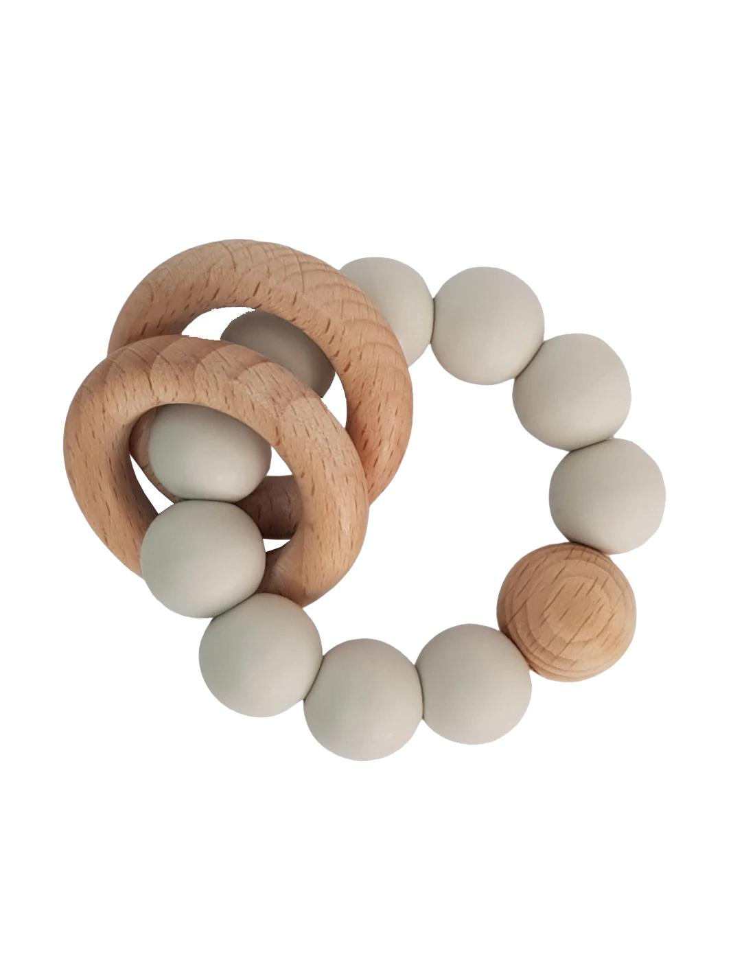 Composé de différentes matières, couleurs et formes, le hochet de dentition participe également à l’éveil des sens de bébé. Il dispose d’un anneau en perles en bois et silicone alimentaire, et de deux petits anneaux en bois lisse. Spécialement pensé pour les petites mains, il peut être manipulé et secoué très facilement. Ainsi, il développe la coordination main:oeil et facilite le développement de la motricité fine de votre bébé.
