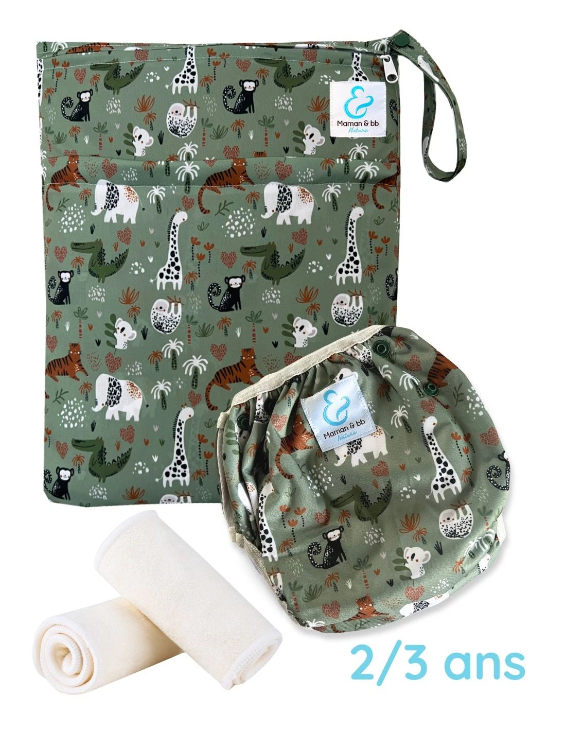 Kit Baignade Bébé 2/3 Ans – Couche Maillot De Bain Lavable + Sac + Inserts – Jungle