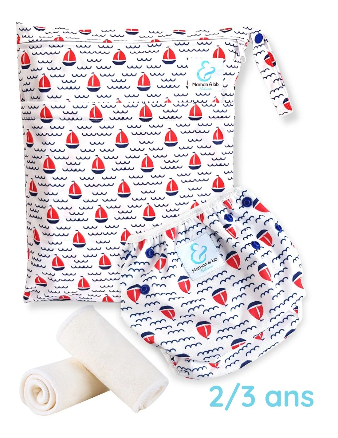 Kit Baignade Bébé 2/3 Ans – Couche Maillot De Bain + Sac + Absorbants – Skipper