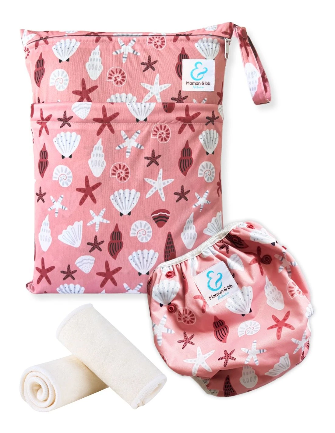Kit Baignade Bébé – Couche De Bain Lavable + Sac Imperméable + Inserts – Coquillage