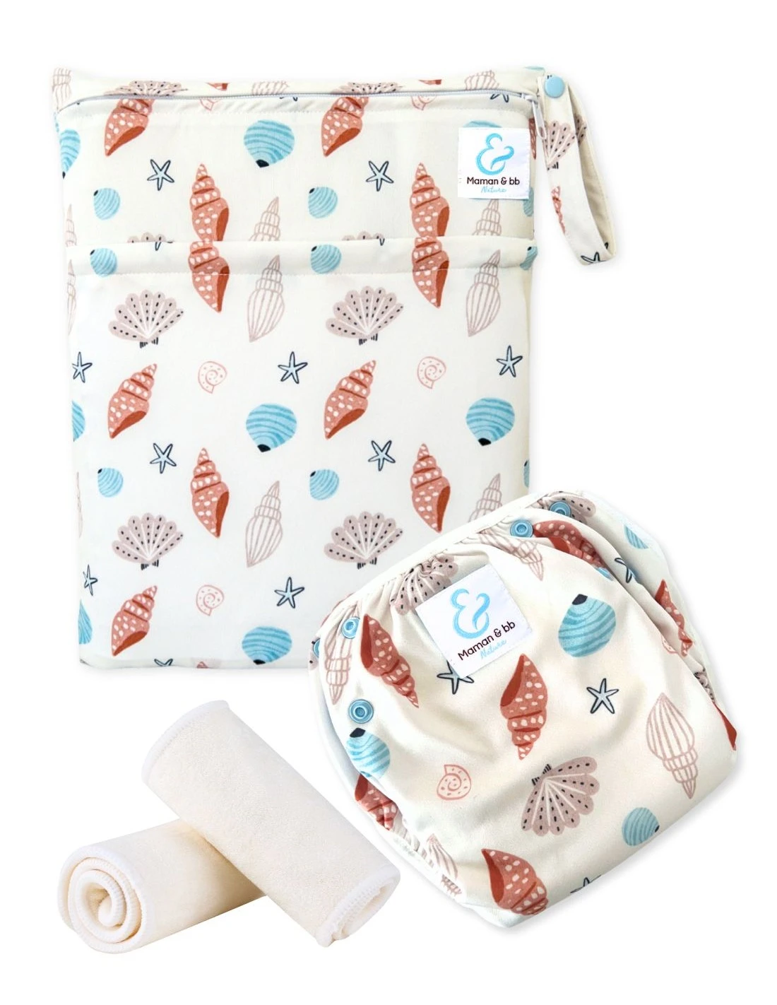 Kit Baignade Bébé – Couche Maillot De Bain Lavable + Sac Imperméable + Inserts – Calypso