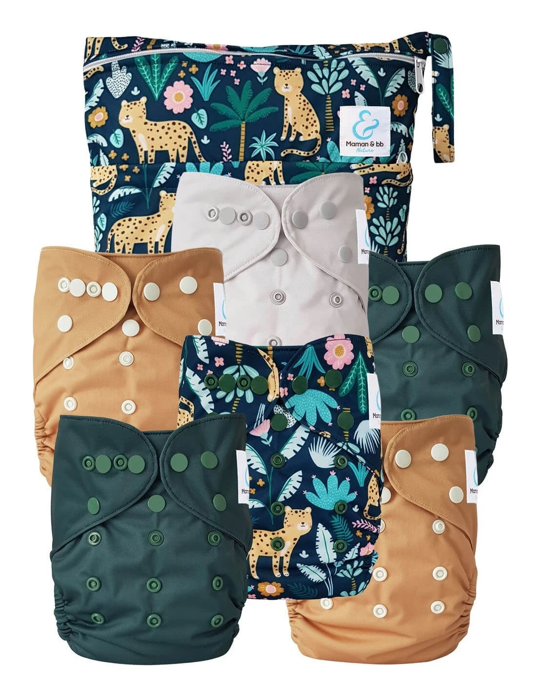 Kit Essentiel – 6 Couches Lavables TE1 + Absorbants + Sac Imperméable – Léopold Le Léopard