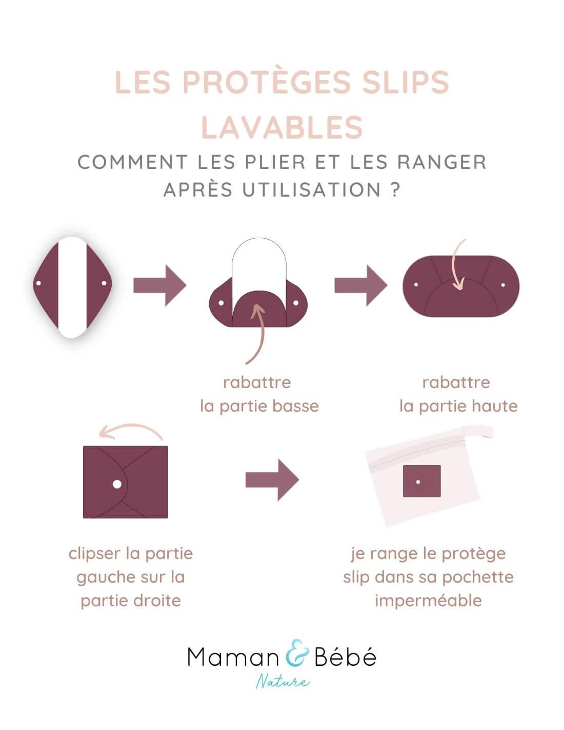 Coté entretien, elles sont très faciles à laver. Elles passent en machine à 40°. Après usage, nous vous conseillons de faire un prélavage à l’eau froide (si tâches de sang) et de stocker les serviettes usagées dans une petit sac en attendant de les mettre à la machine.