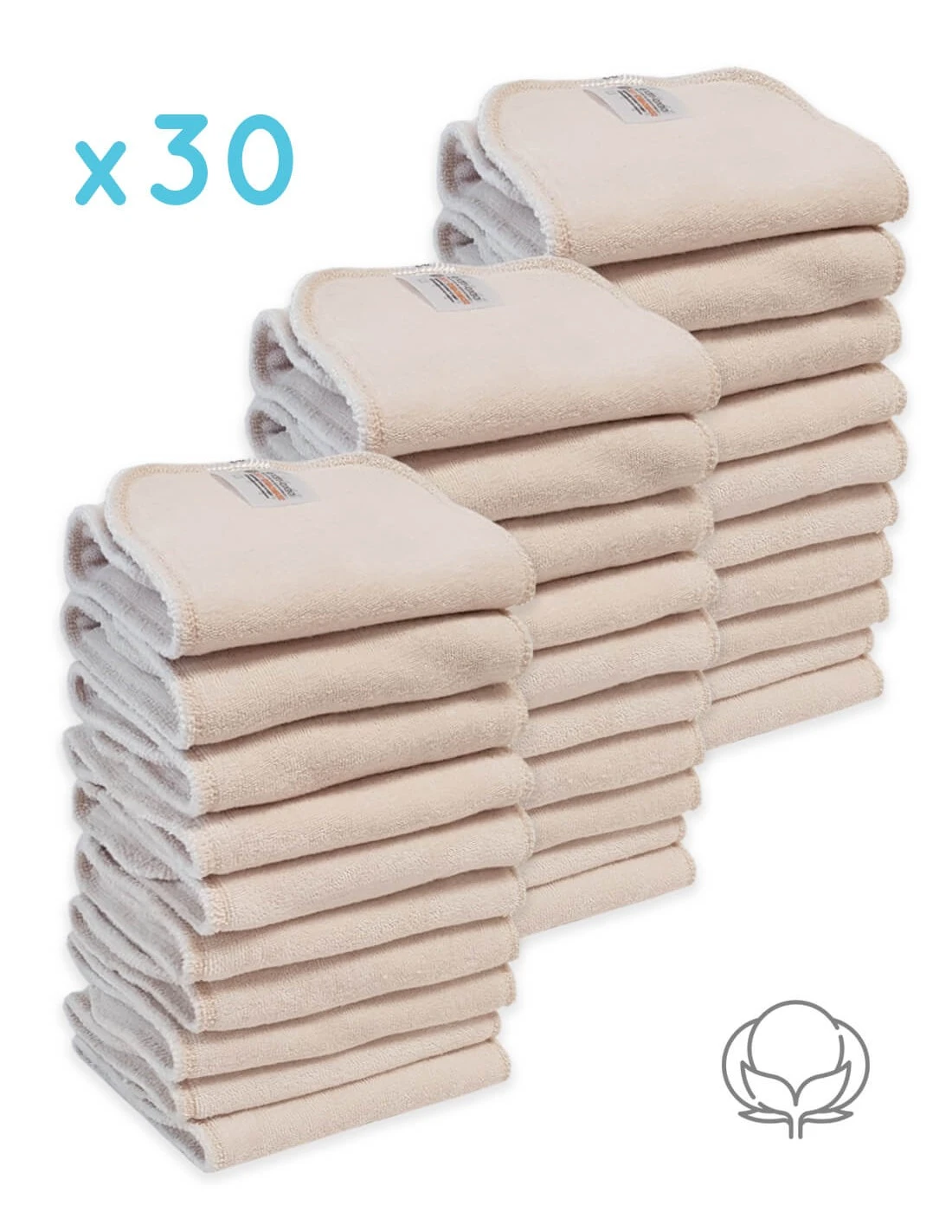 - 3 épaisseurs : deux épaisseurs de coton, et une de microfibre