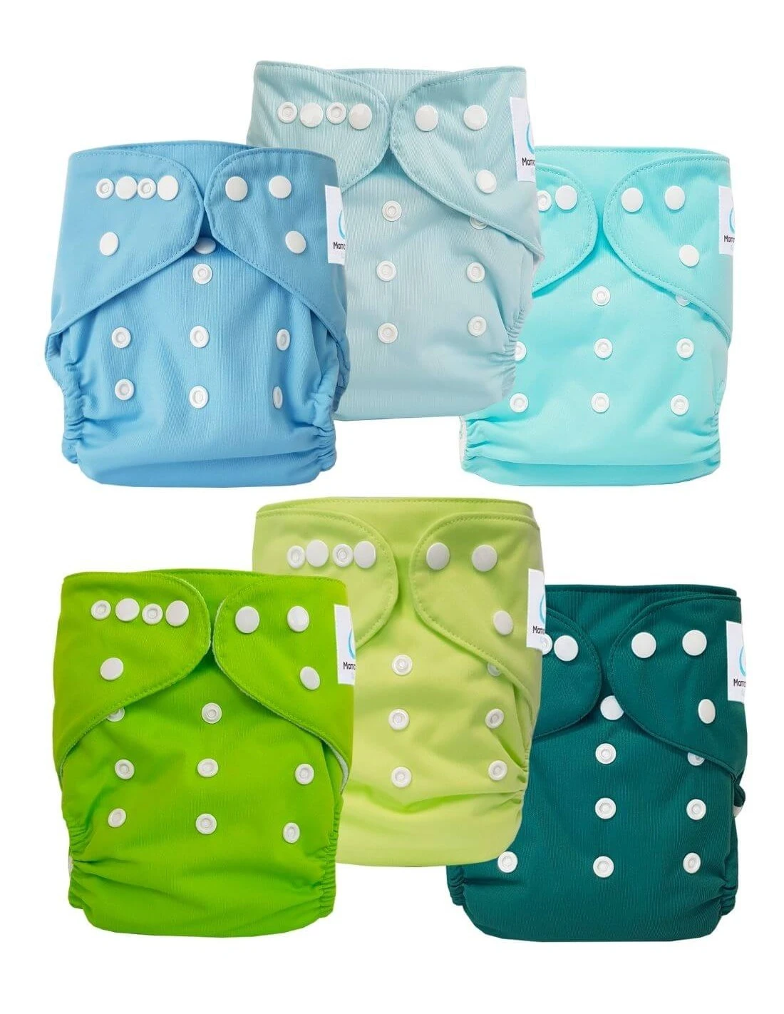 Lot 6 Couches Lavables TE1 évolutives – Sensitive – Blue Green