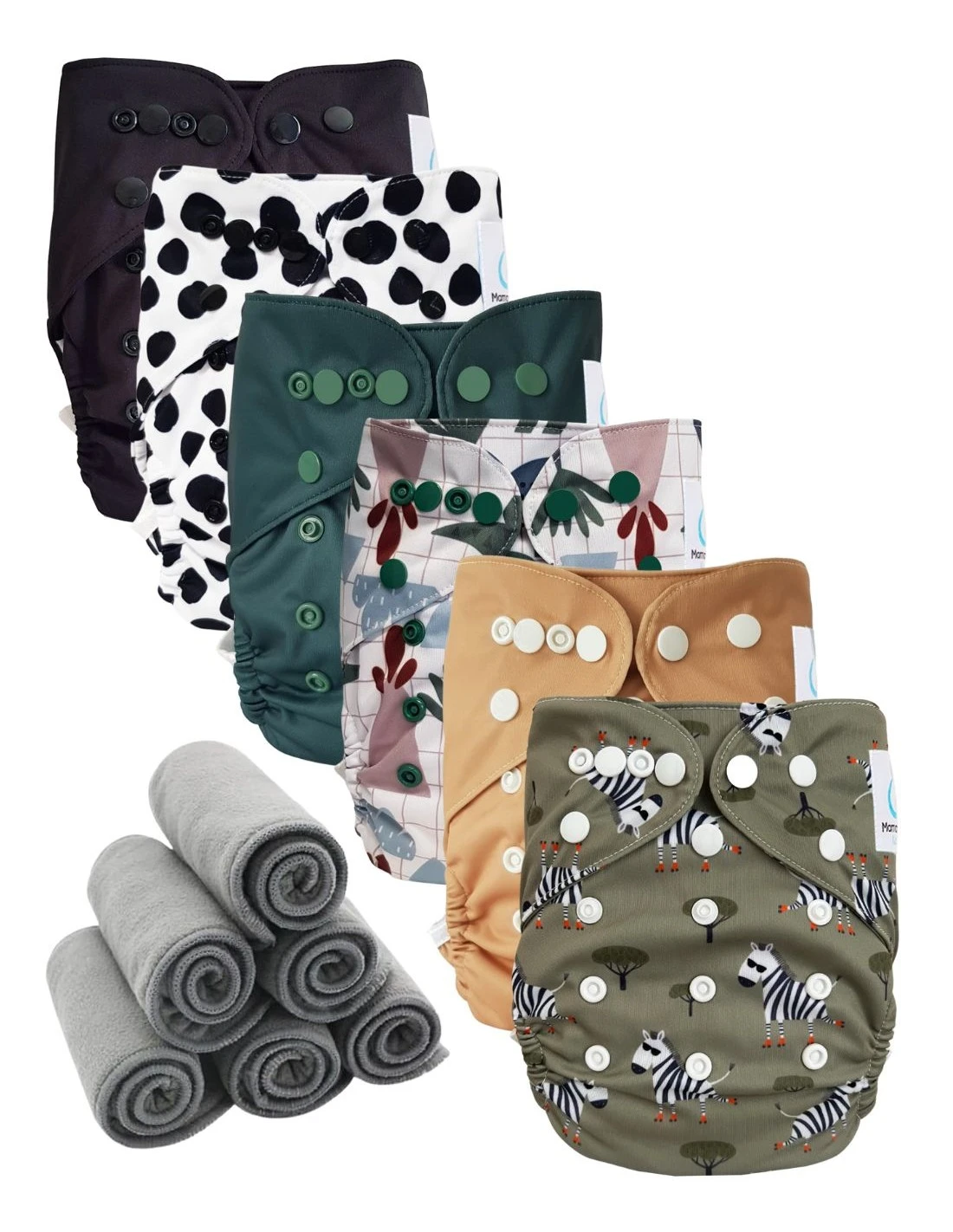Lot 6 Couches Lavables TE2 + 6 Inserts Bambou – Leo Le Zebre