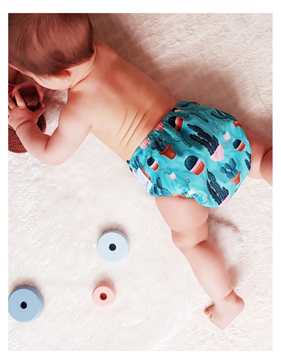 En Te2 seule la partie absorbante (insert) part au lavage à chaque change. La culotte pourra être utilisée plusieurs fois (sauf en cas de débordement) avant d’être lavée. Pour se faire au moment du change il suffira de nettoyer la culotte avec une serviette humide ou une lingette. Munie de double goussets cette couche lavable est un véritable allié anti fuite. Conçue en PUL de haute qualité : durable, imperméable et respirant, avec des élastiques doux et performants aux cuisses, pour un ajustement idéal ! Cette culotte de protection est munie d’un emplacement à pression afin d’y fixer l’insert pour qu’il reste bien en place.