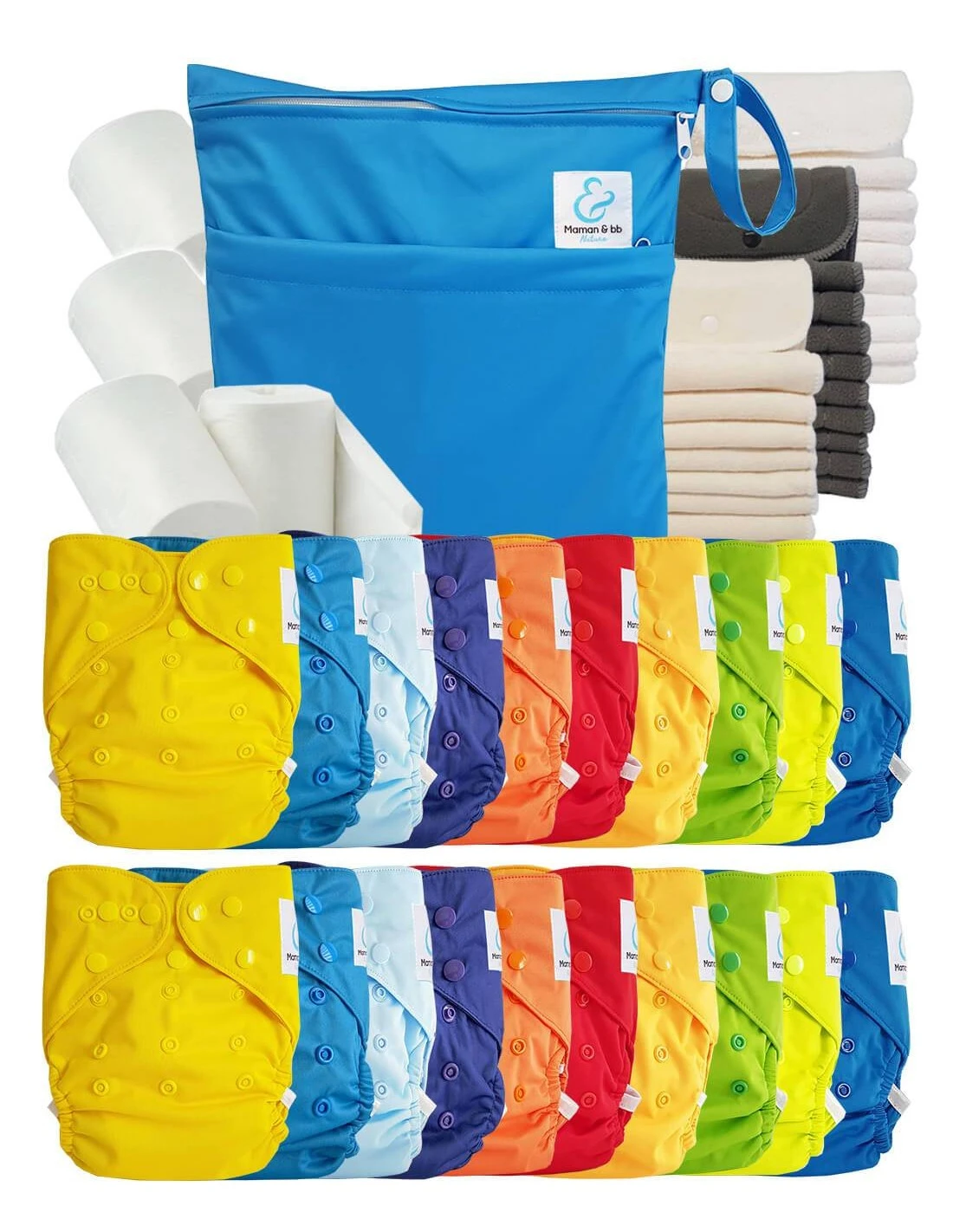 Mega Pack : Lot De 20 Couches Lavables TE2 + 30 Inserts + 400 Voiles + Sac Imperméable – Smile