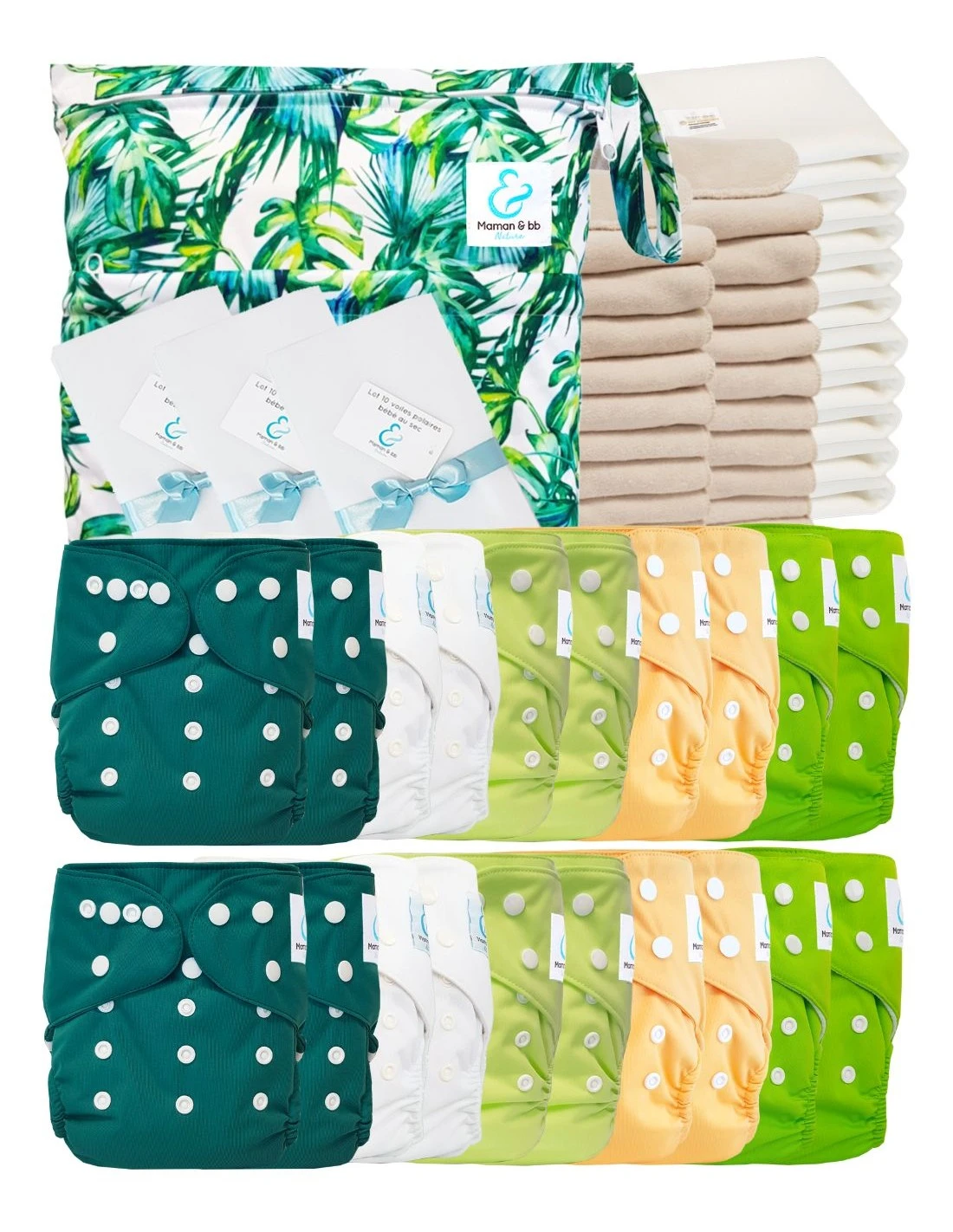 – Lot de 20 inserts en Coton et Microfibre certifiés Oeko Tex® 100 classe 1 (inclus dans les couches)