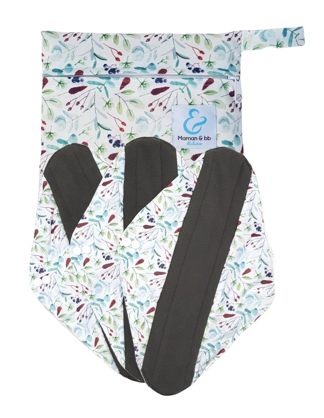 Il est composé de 3 serviettes hygiéniques lavables en charbon de bambou