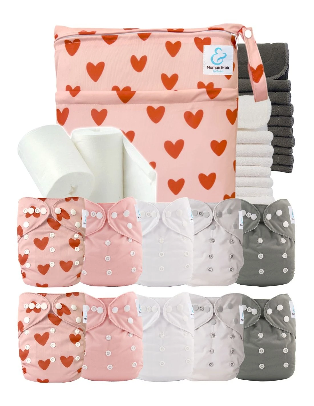 - 10 Couches Lavables tout en Deux (Te1) à poche.