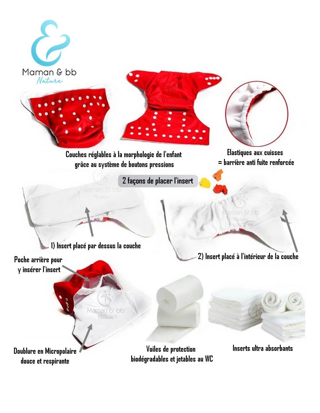 – de vous faciliter le nettoyage de vos inserts et de vos couches grâce à la récupération des selles directement dans le voile. En effet, plus besoin de frotter vos inserts pour retirer les taches dues aux selles tout est récupéré dans le voile.