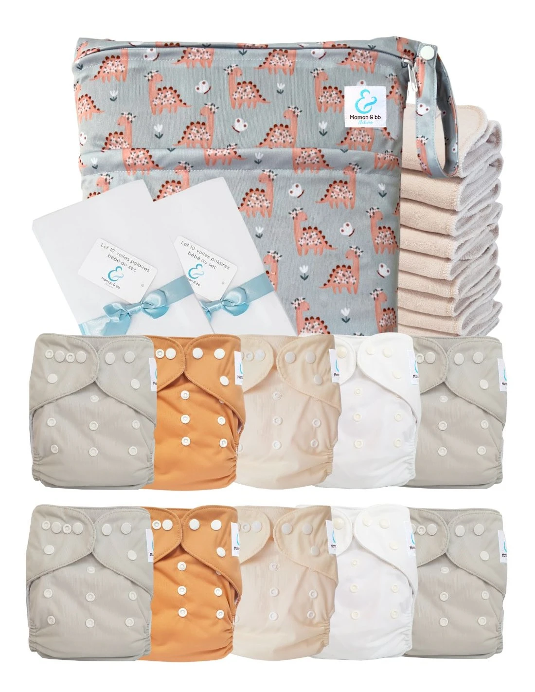 Pack Premium Sensitive : 10 Couches Lavables TE1 + Inserts Coton + Voiles + Sac Imperméable – Margot