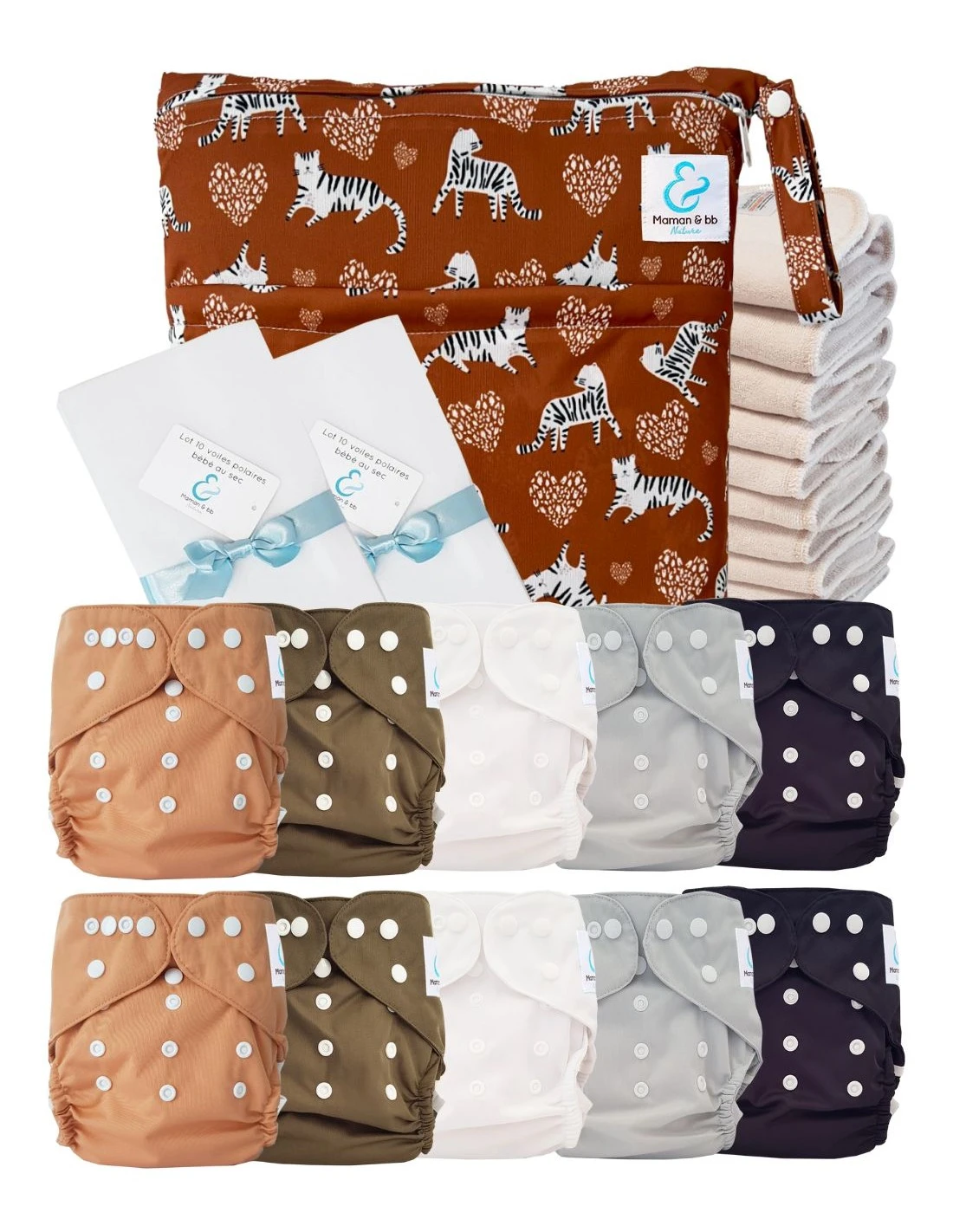 – 10 couches lavables Tout en deux fabriquées en matériaux certifiés Oeko Tex®.