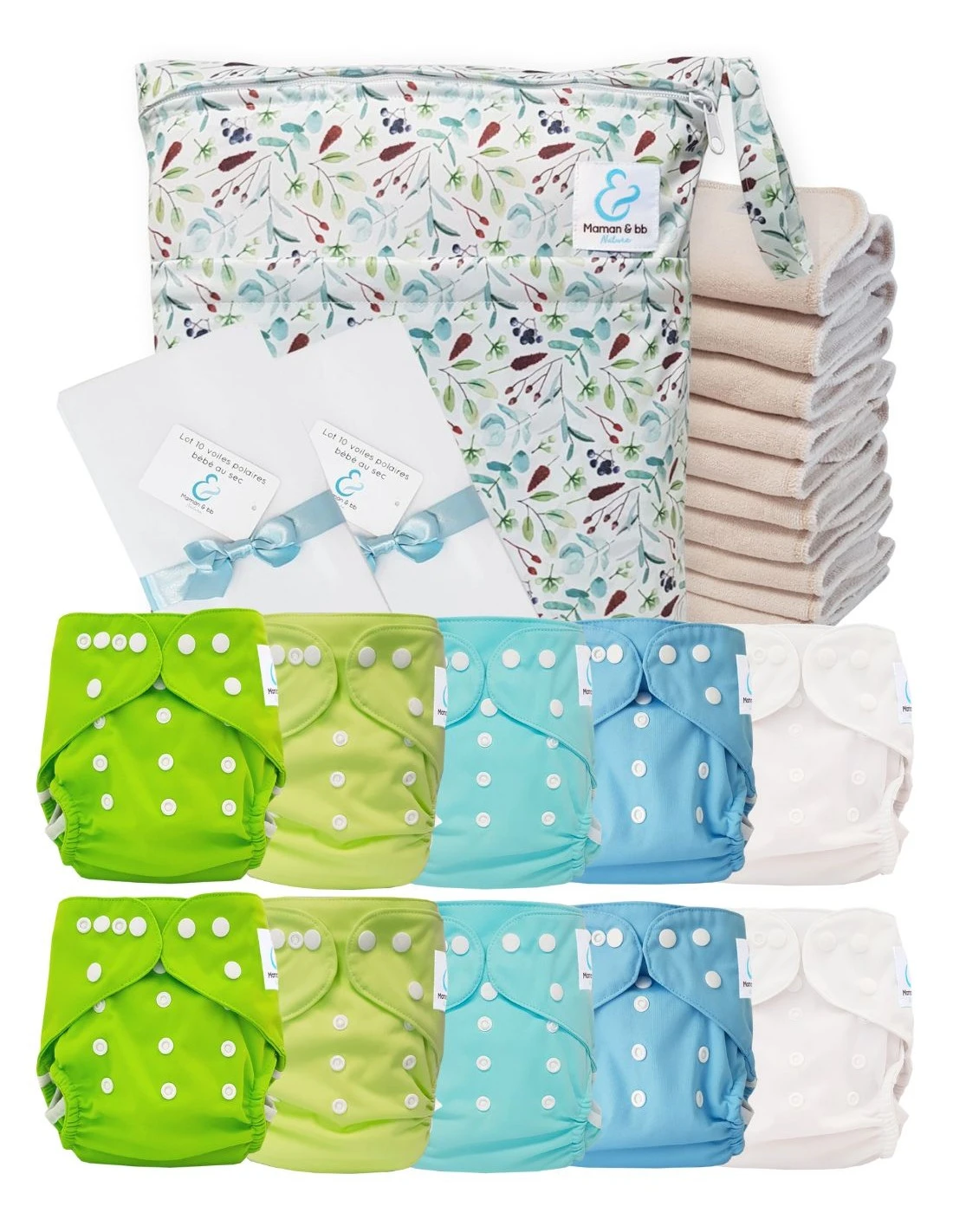 – 10 couches lavables Tout en deux fabriquées en matériaux certifiés Oeko Tex®.
