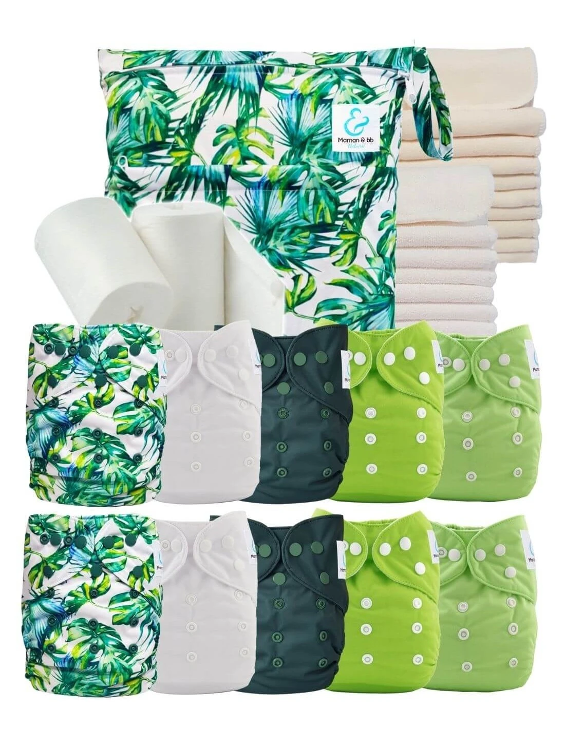Pack Premium TE1 : Lot De 10 Couches Lavables + Inserts + Voiles + Sac Imperméable – Bali