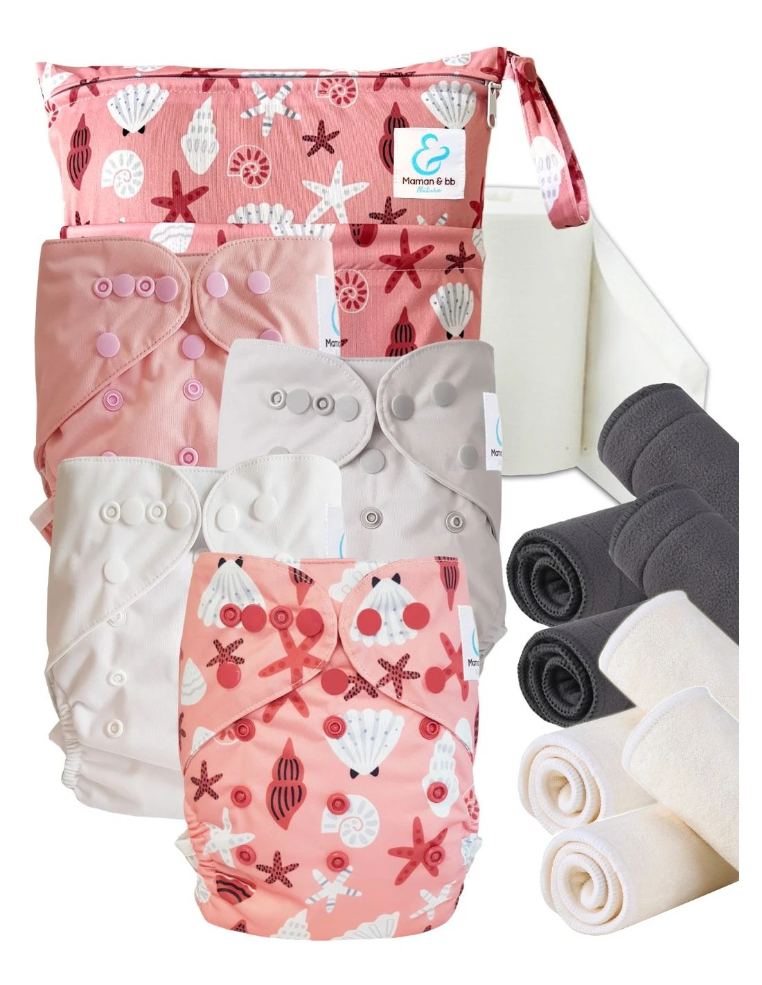 Start And Go TE2 Bambou – Kit 4 Couches Lavables TE2 – Coquillages