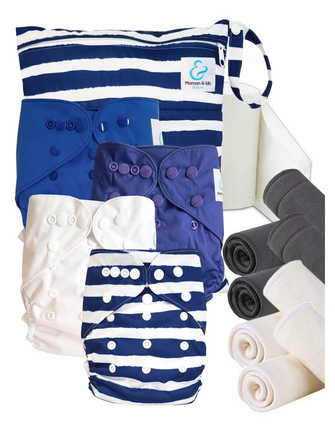 Ce pack Start And Go vous permettra de vous faire une vraie idée sur l’utilisation des couches lavables et leur fonctionnement en vous permettant une utilisation sur une journée. Il se compose comme suit :